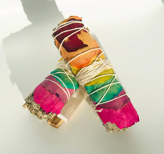 White Sage, Palo Santo, Selenite Smudge Bundle