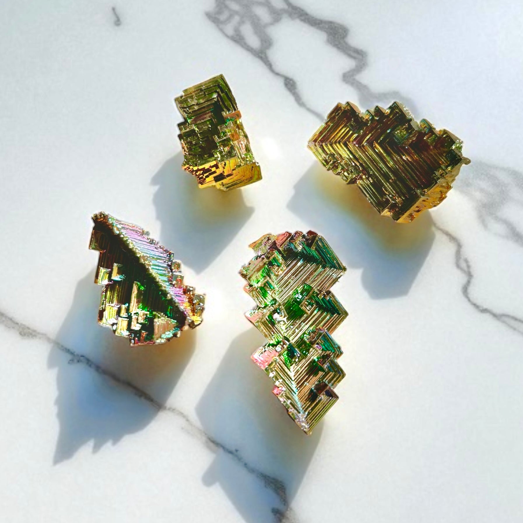 Bismuth is associated with transformation, adaptability, and connection. It helps balance energy, enhance focus, and open the mind to new perspectives.