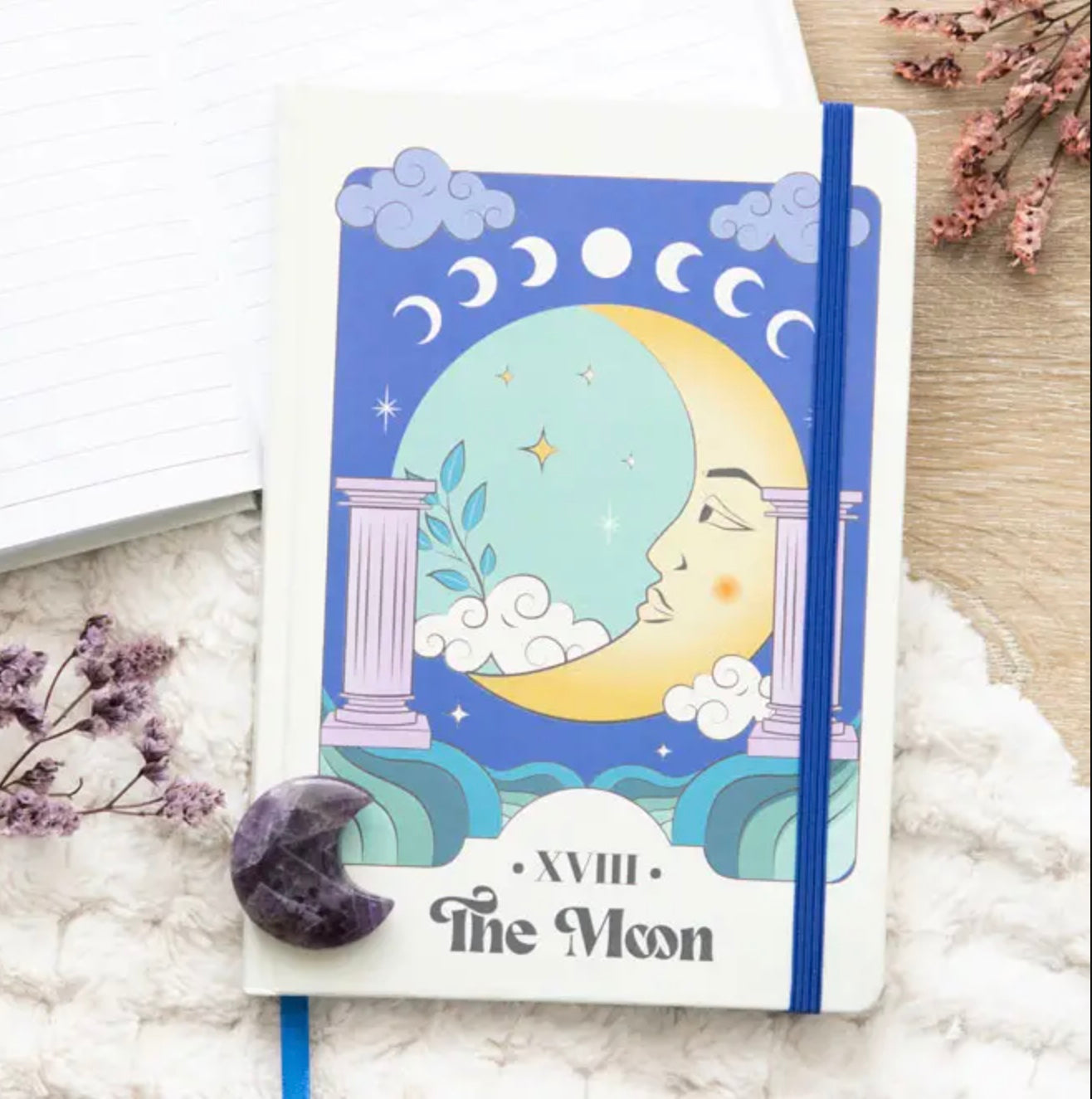 This stunning celestial-themed A5 notebook features a colourful design inspired by 'The Sun' and 'The Moon' tarot cards.