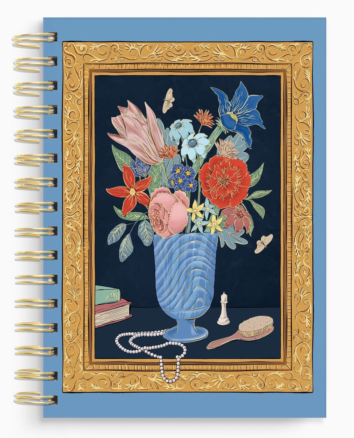Notebook measures 8.75" x 6.25" and is bound with gold double-O wire binding. Includes 200 lined pages.