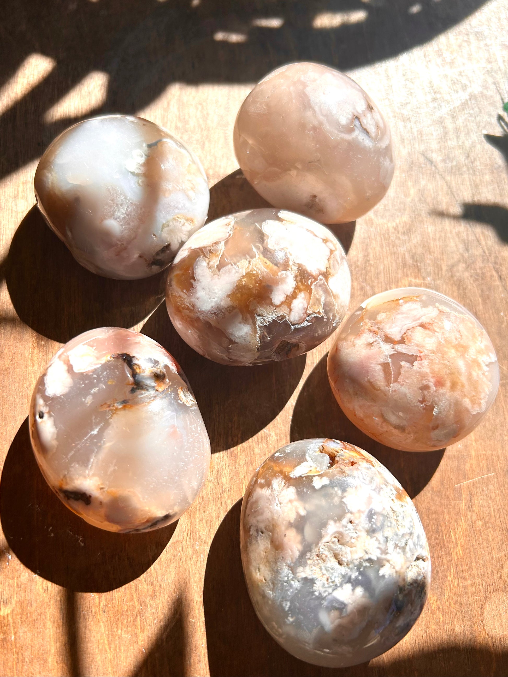 Flower Agate is a beautiful, nurturing crystal that carries a deep spiritual meaning. It is associated with personal growth, transformation, and new beginnings. The delicate floral patterns within the stone symbolize blossoming potential, making it a powerful tool for those seeking self-discovery and fulfillment.