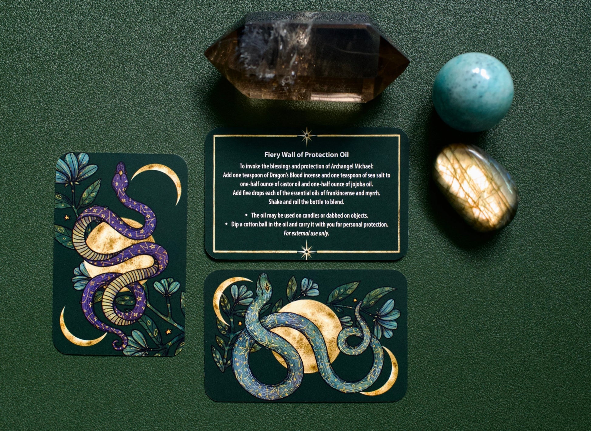 This little deck of spells will have witches casting easy, practical protection spells in no time at all. Banish bad energy and defend your personal space. Choose a card based on your intention, or pull a card at random and let your intuition be your guide. This compact deck is the perfect size to tuck in a purse or pocket, so you’re never without a magical remedy. A great gift for any beginner witch.