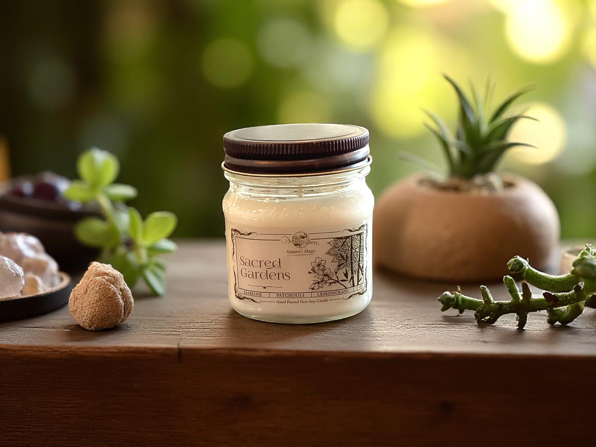 Handmade Soy Wax Candle with Essential Oil Blends & touch of magickal herbs.