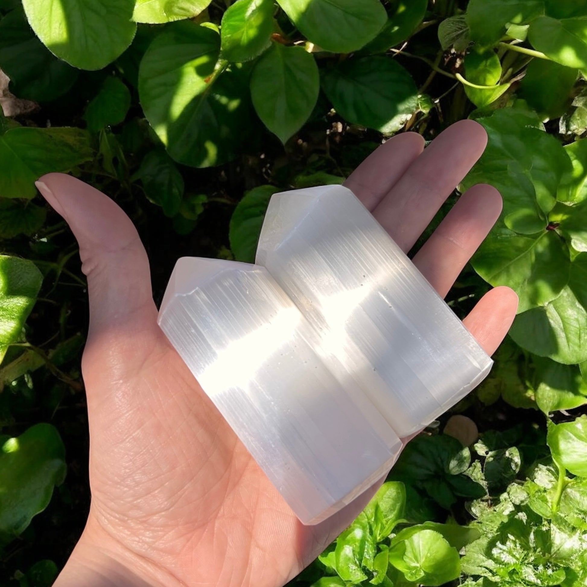 Selenite crystal is known for its purifying properties. The stone is used for cleansing space and charging other crystals.