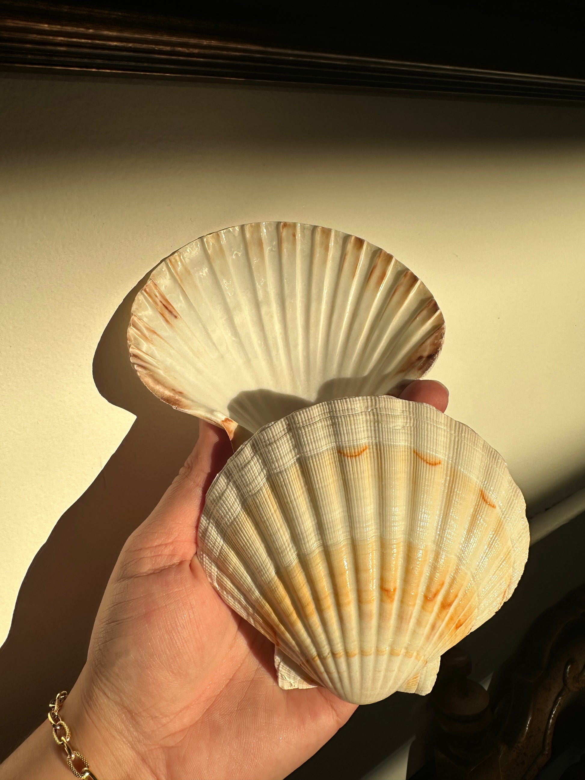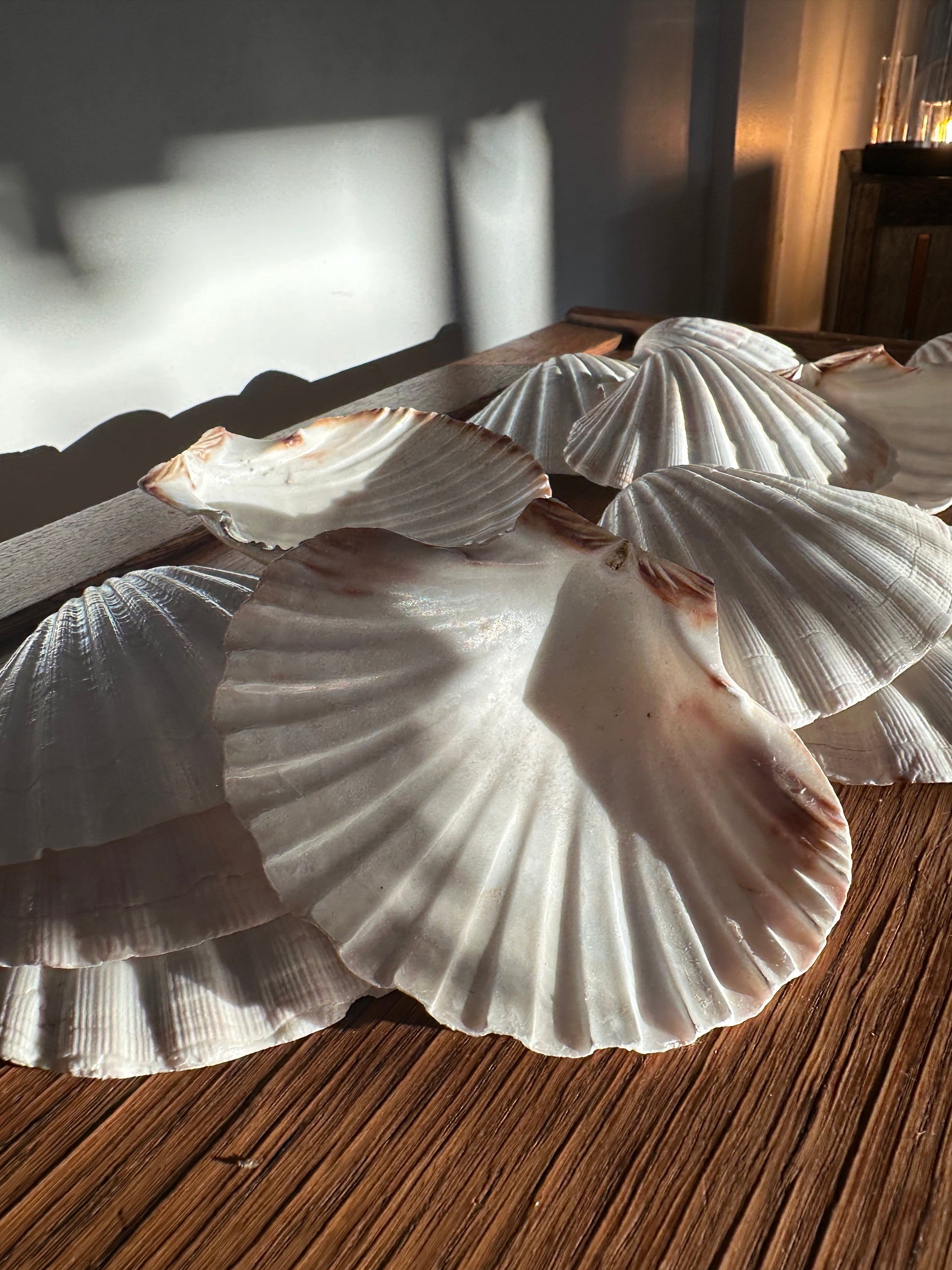 The Great Scallop, King Scallop, or Pecten Maximus is a large bivalve with a distinct fan-shape shell with beautiful radiating ridges. These lightly glossed shells can be turned into infinite handmade crafts and are perfect natural vessels to be used in ceremony, cleansing, caring water, holding tea candles, sand, salt, oils, and herbs. They make wonderful additions to any alter or sacred space.