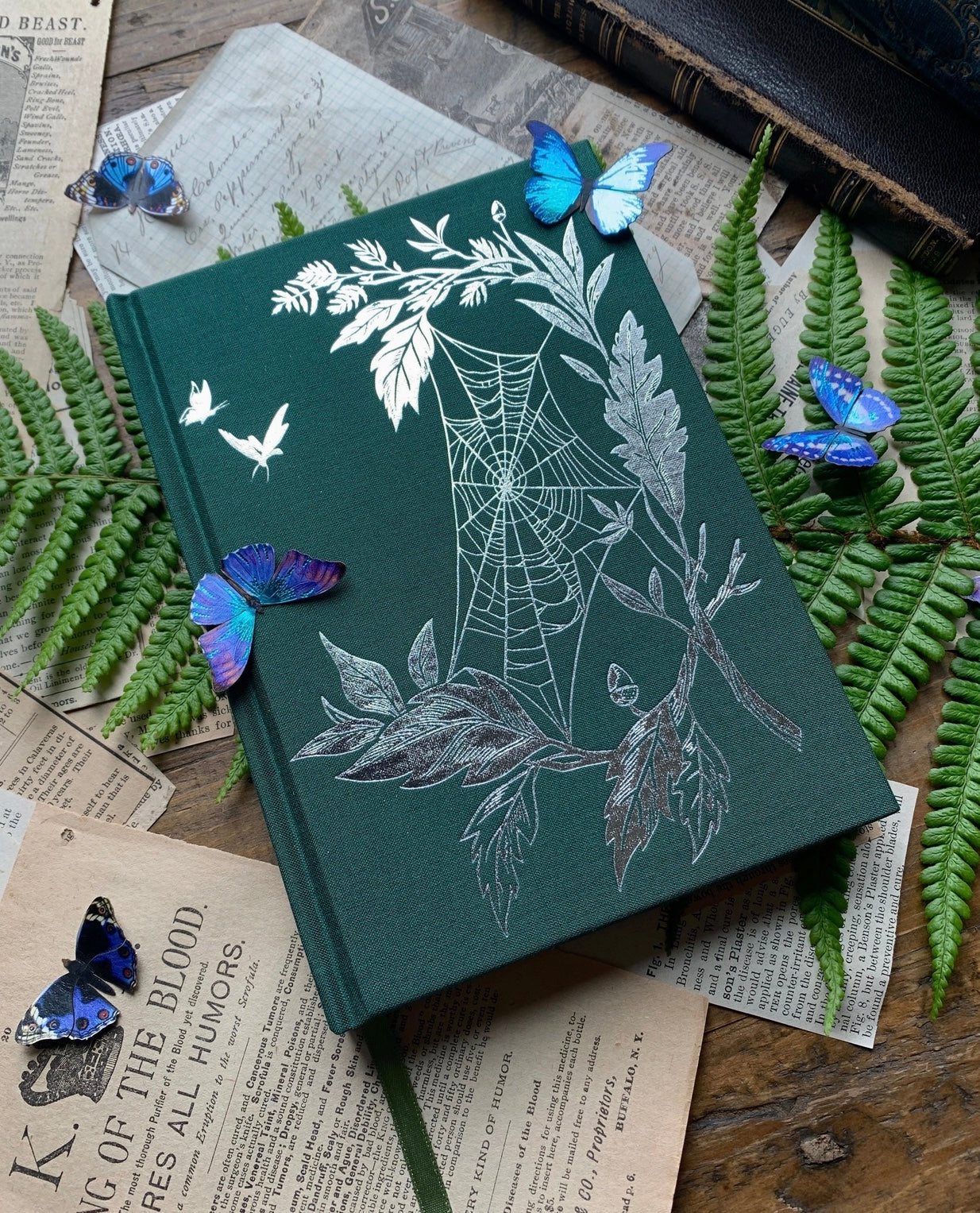 •Dark green linen hardcover with foil stamping on cover and spine.