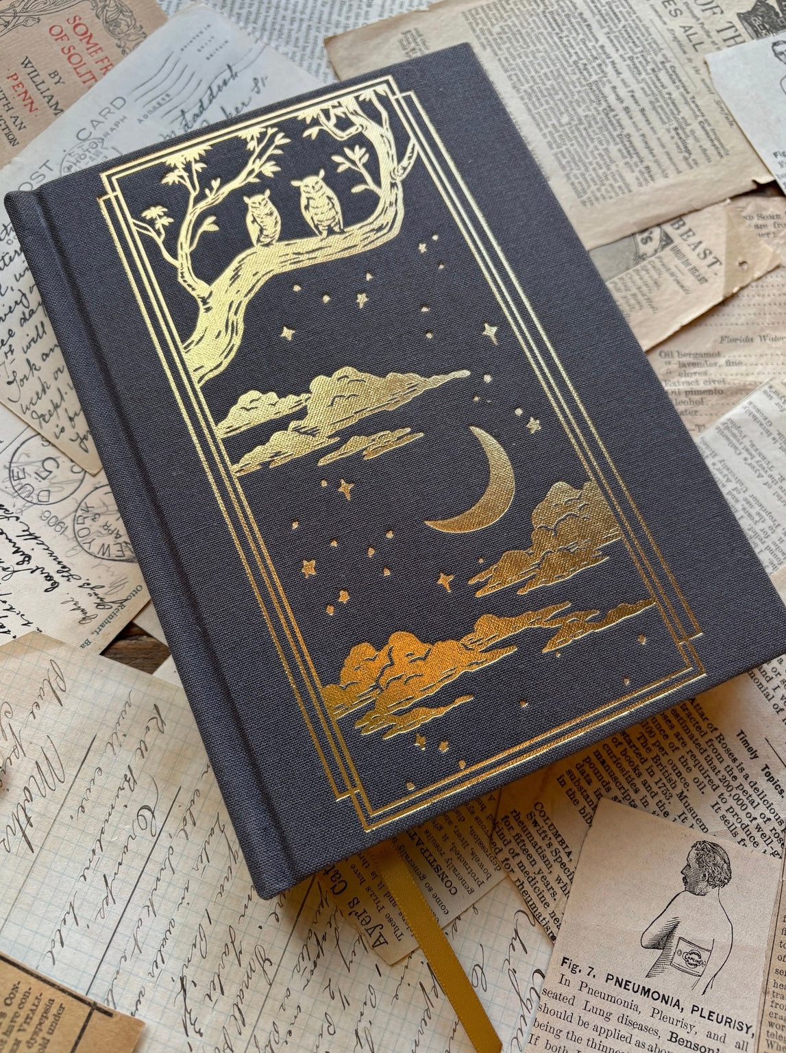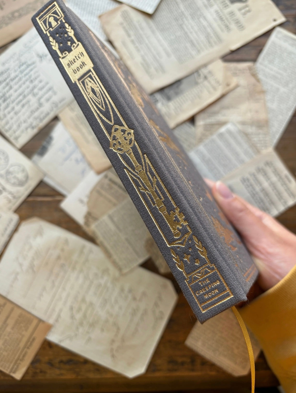 •Dark grey linen hardcover with gold foil stamping on cover and spine