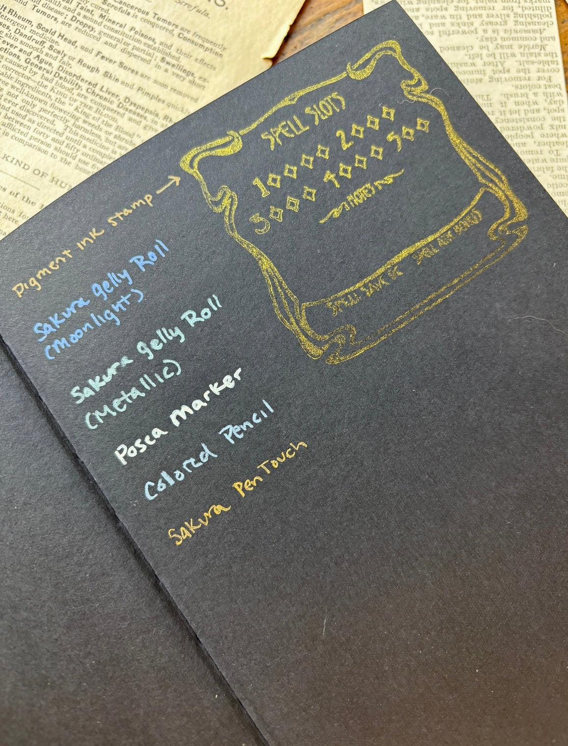 Paper stock is recommended for pens such as gel pens, dip pens, acrylic markers; as well as colored pencils. Wet media such as gouache may cause page warping and is not recommended.