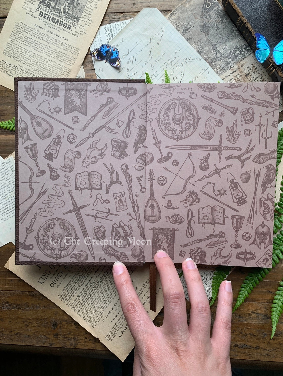 •Dark brown linen hardcover with foil stamping on cover and spine.