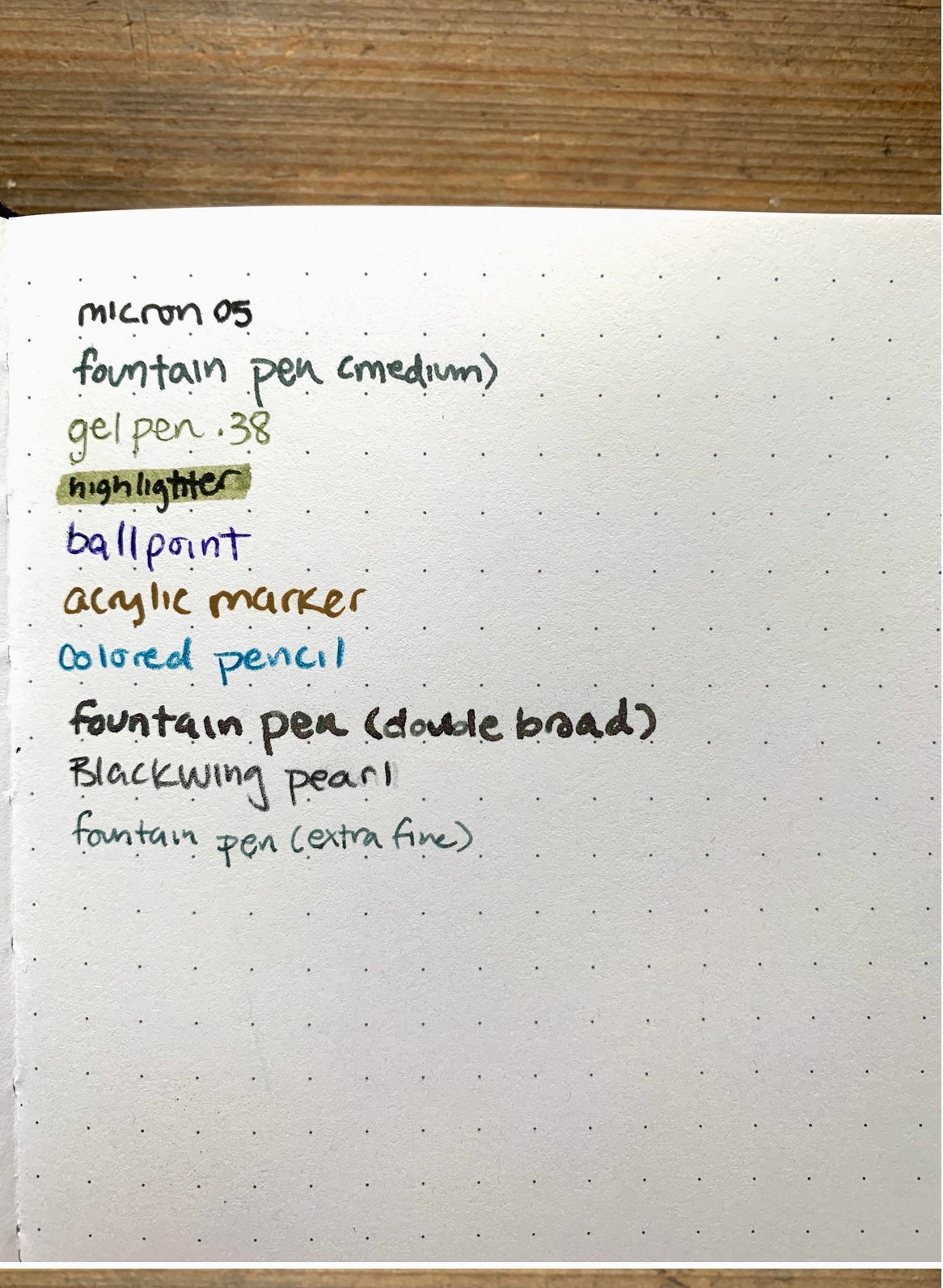 Paper stock is recommended for: micron pens, Posca markers (and other acrylic markers), fountain pens, graphite and colored pencils. They are not recommended for alcohol based markers, sharpies or wet media such as watercolor, as these will all bleed through the paper and cause warping.