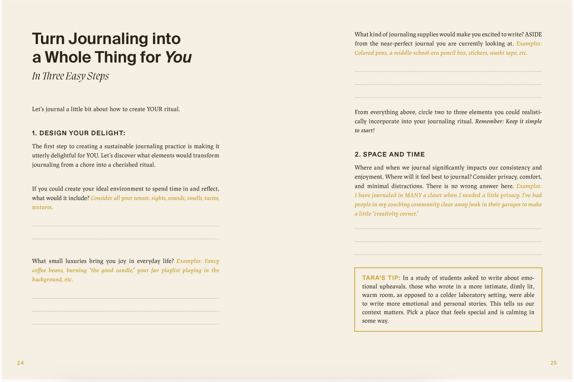 As someone who strongly resisted the idea of writing down her thoughts (ew, how cheesy), Tara knows firsthand that getting started is hard, but keeping it going can be just as tough. Her anti-corny-but-still-not-boring advice will help you learn how to overcome those doubts (yes, you do have time, even though you CANNOT give up watching The Real Housewives) and create a ritual around journaling (the magic that keeps your practice going).