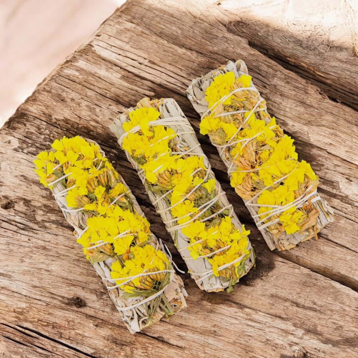 4" White Sage & various color Sinuata Flowers Bundles