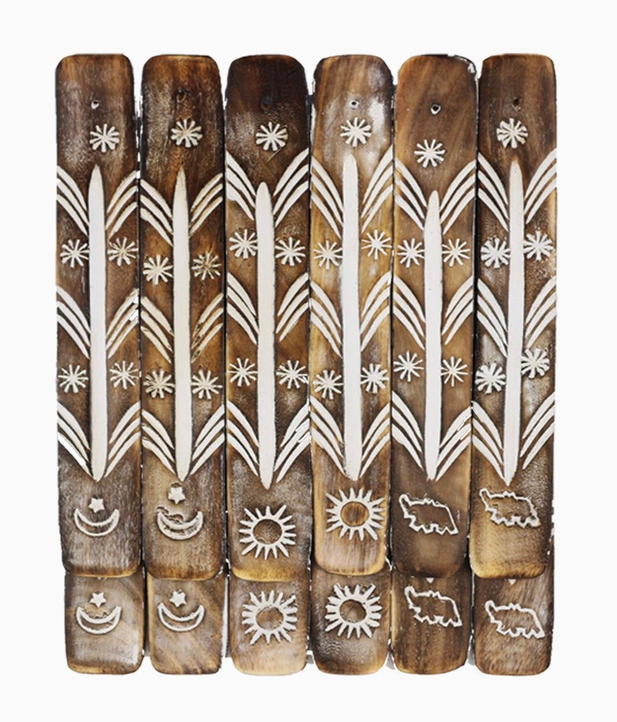 11" Hand Painted Patterned Mango Wood Incense Stick Ash Catcher in an Antique Style